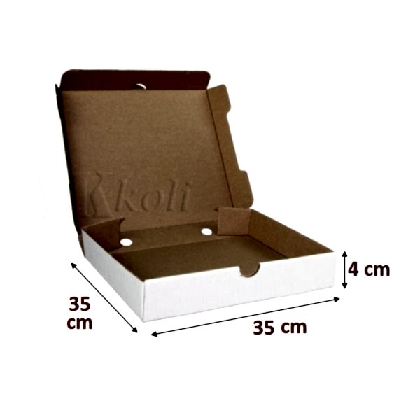 Pizza kutusu üreticileri arasında öncü olan firmamız 35 cm lik beyaz pizza kutusunu hizmetinize sunmaktadır. Beyaz pizza kutusu 35 cm lik taban kenarlarına sahiptir. Pizza ürünlerinin paketlenerek taşınmasında yaygın olarak kullanılan ebada sahiptir. Kare tabanlı kutu olup, kutunun boy ve en ölçüleri 35 cm dir. En yaygın kullanılan pizza kutularından birisidir. 35’lik pizza kutusu aynı zamanda tablo ve saat kutusu olarak da değerlendirilmektedir. Kullanım alanı arasında baklava tepsisinin veya baklava ürünlerinin taşınması da bulunmaktadır. Ayrıca pastanelerde bazı ürünlerin paketlenmesinde kullanılabilmektedir. 35lik pizza kutusu, oluklu mukavva çeşidi bakımından E dalga yani mikro dalga levhalar kullanılarak üretilmektedir. Pizza kutuları, oluklu mukavva kutu olup, gıda ürünlerinin sıcılakığının korunmasını sağlar ve pizza ürünlerinin hamurlaşmasını engeller. Duvar saatleri için ve ayrıca düz yapılı ince süslemelerin paketlenmesi için uygun bir kutu çeşididir. Ayrıca duvara asılan tablolar için de elverişlidir. farklı ve benzer boyutlarda karton kutu modellerimiz mevcuttur. Baskılı pizza kutusu olarak uygun baskı ve yazı şekilleri ile satışa da sunulabilmektedir. Baskılı pizza kutusu, baskısız pizza kutusu, baskılı saat kutusu ve baskısız saat kutusu, baskılı tablo kutusu ve baskısız tablo kutusu olarak farklı ebatlar için de ürün seçeneklerimiz bulunmaktadır. 35 cmlik pizza kutusunun kraft ve beyaz renk seçenekleri vardır. Müşterilerimizin talebine göre kahverengi veya beyaz kağıt hammedde olarak hizmete sunabilmekteyiz. –Her türlü kutu ve koli ihtiyaçlarınız için bizi arayınız:–